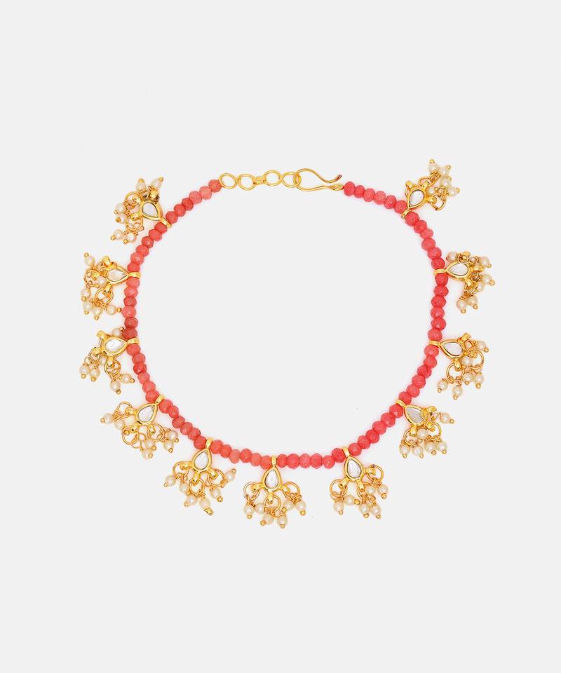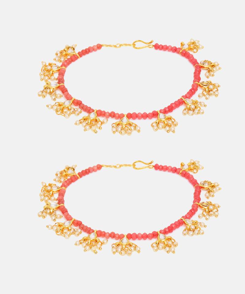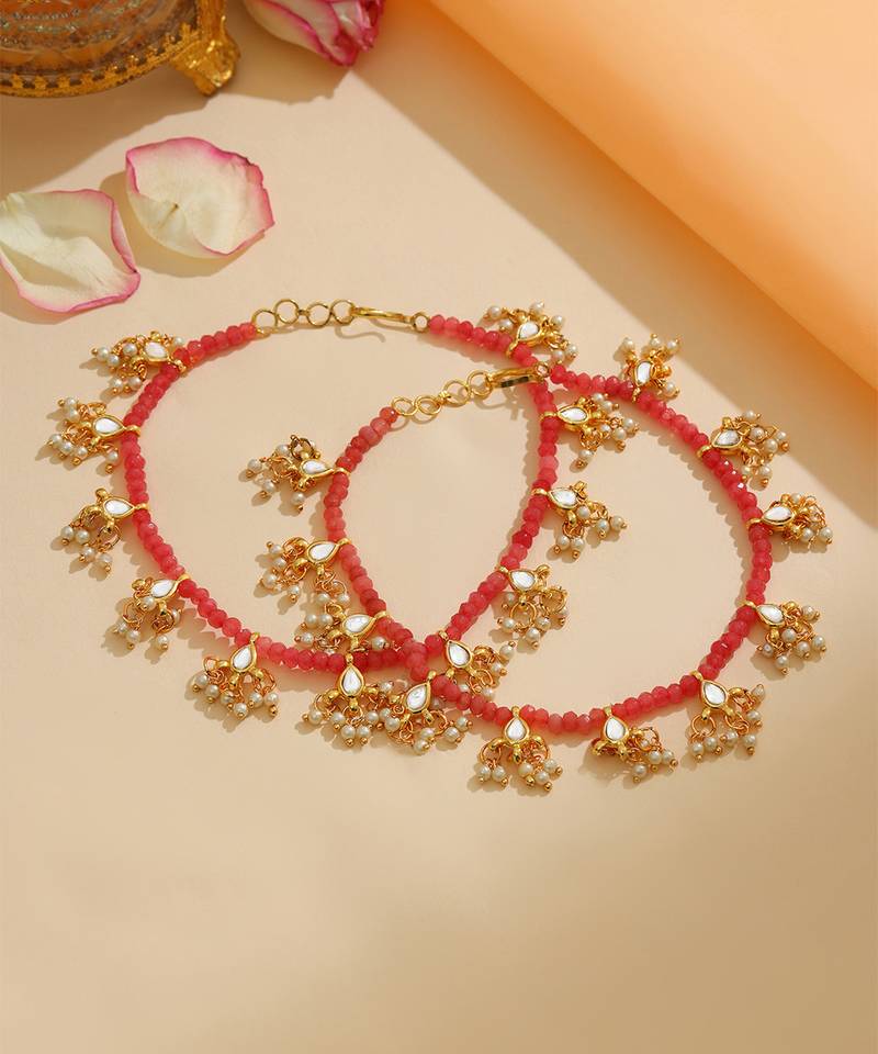 | Product Name | Gold Plated Kundan Red Beaded Anklets | |