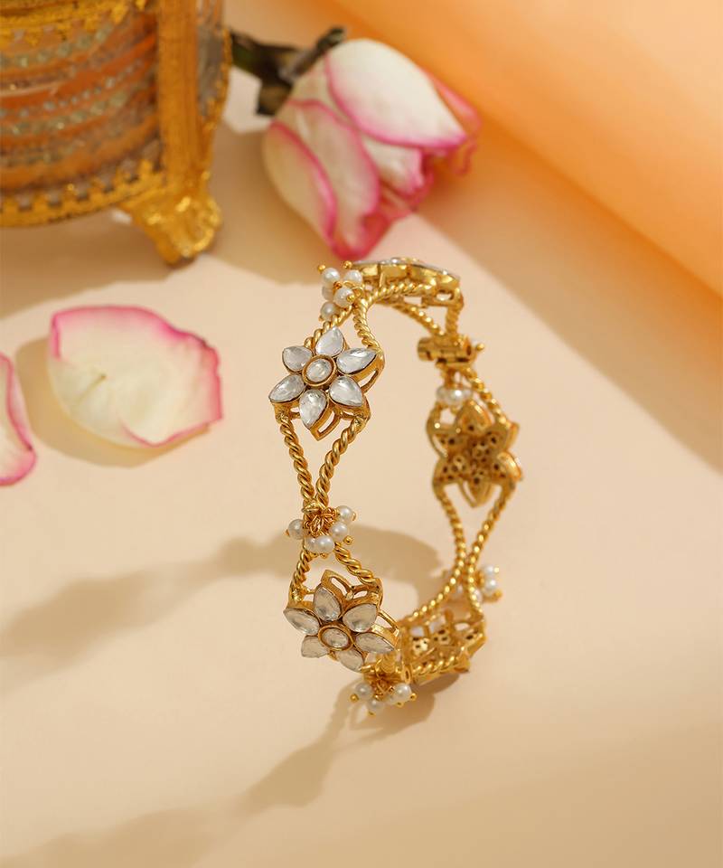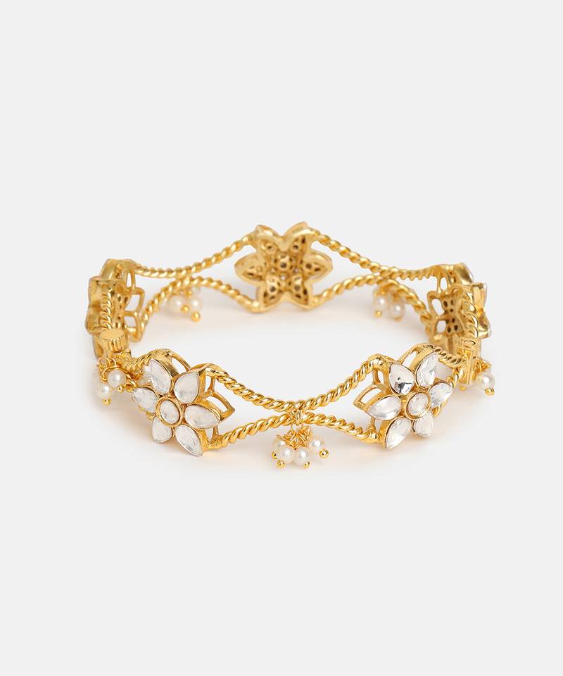 | Product Name | Gold Plated Kundan White Stone Bangle | |