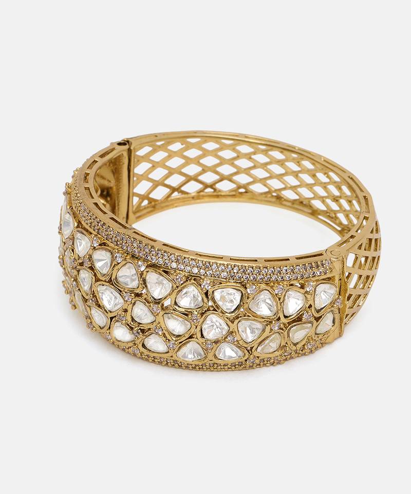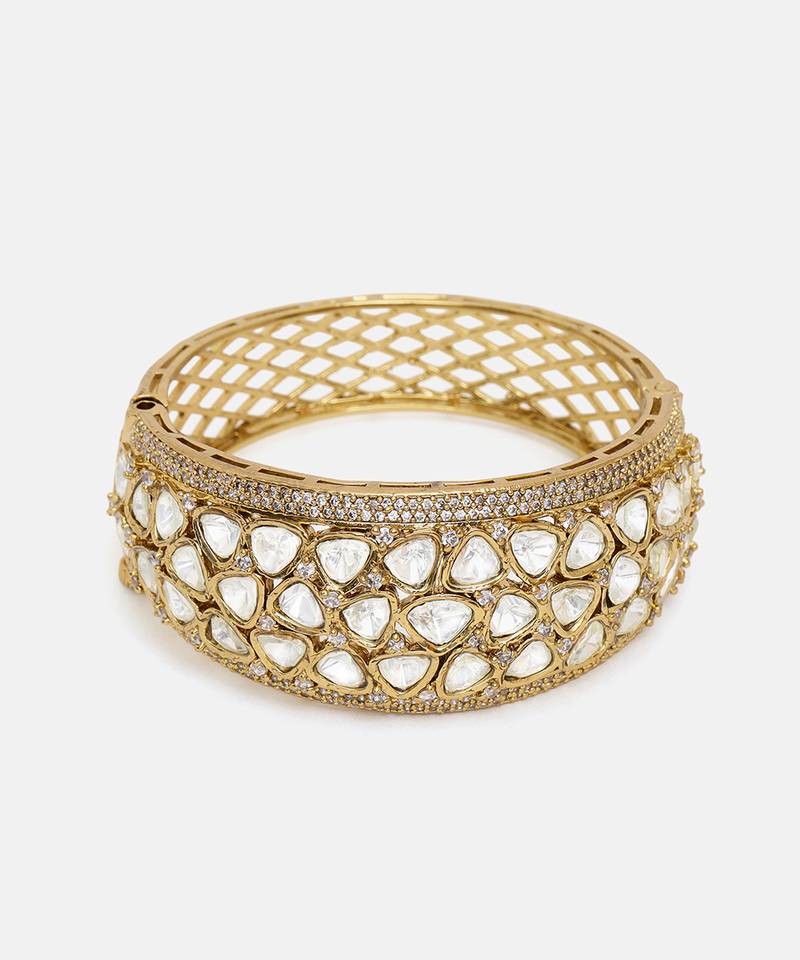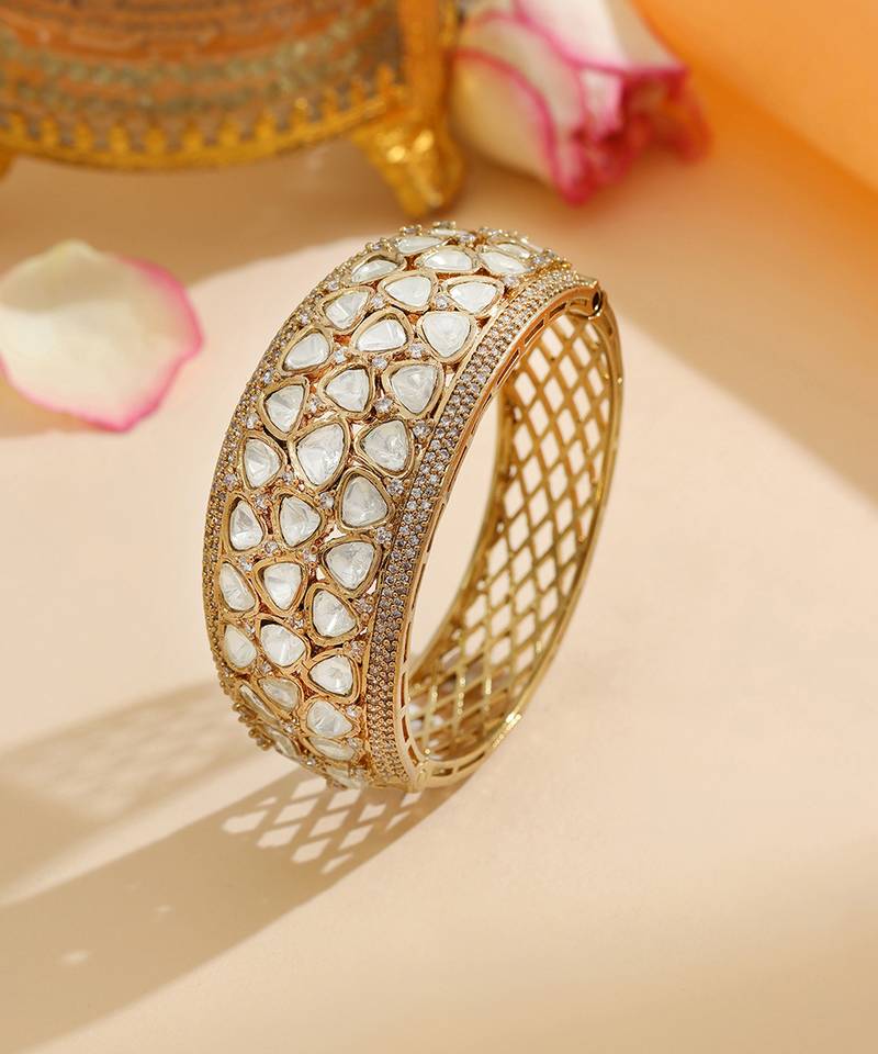 | Product Description | This Gold Plated Kundan Bangle Radiates Vibrant Elegance With Its Intricate Craftsmanship And Rich Detailing. Embellished With Classic Kundan Work And Colorful Accents, It Adds A Festive, Regal Touch. Perfect For Weddings, Celebrations, And Special Occasions, It Beautifully Enhances Traditional And Ethnic Ensembles With Timeless Charm And Sophistication.