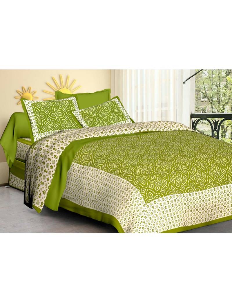 Rudra Sanganeri Printed Cotton Double Bedsheet with 2 Matching Pillow Cover.