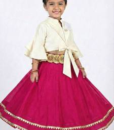 | Product Description | Dress Your Little One In Timeless Elegance With This Ivoryand Magenta Lehenga Set. Featuring A Soft Flared Skirt With Gold Border Detailing And A Stylish Tie Front Blouse With Bell Sleeves, This Outfit Blends Comfort And Charm. Perfect For Weddings, Festivals, And Special Occasions. Lightweight Fabric Ensures Easy Movement. |