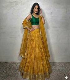 Product Name Mustard Yellow Lehenga With Green Blouse