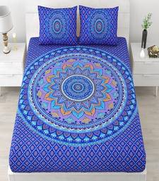 Blue floral printed cotton double bedsheet with 2 pillow cover (90x108inch)