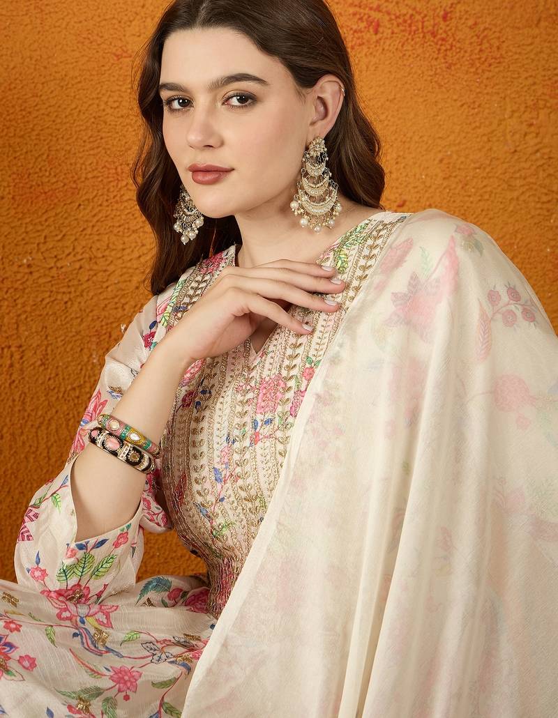 Dupatta : Color- Cream / Fabric- Silk Blend