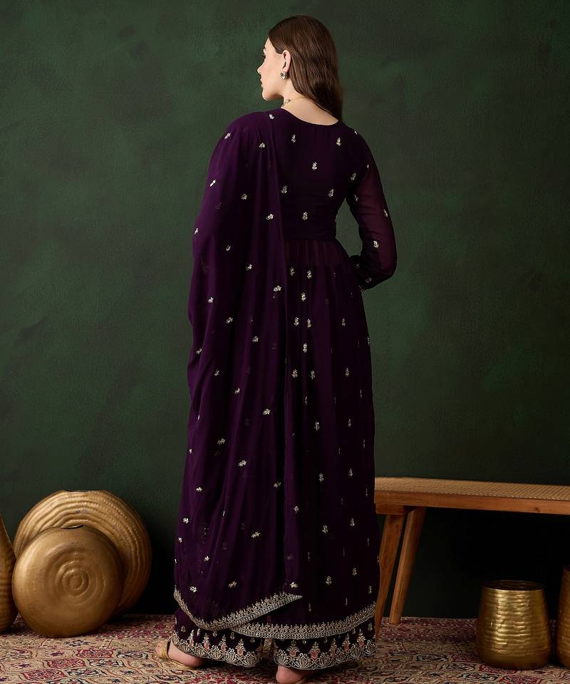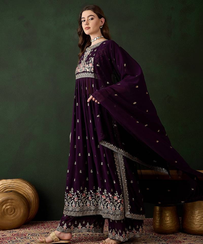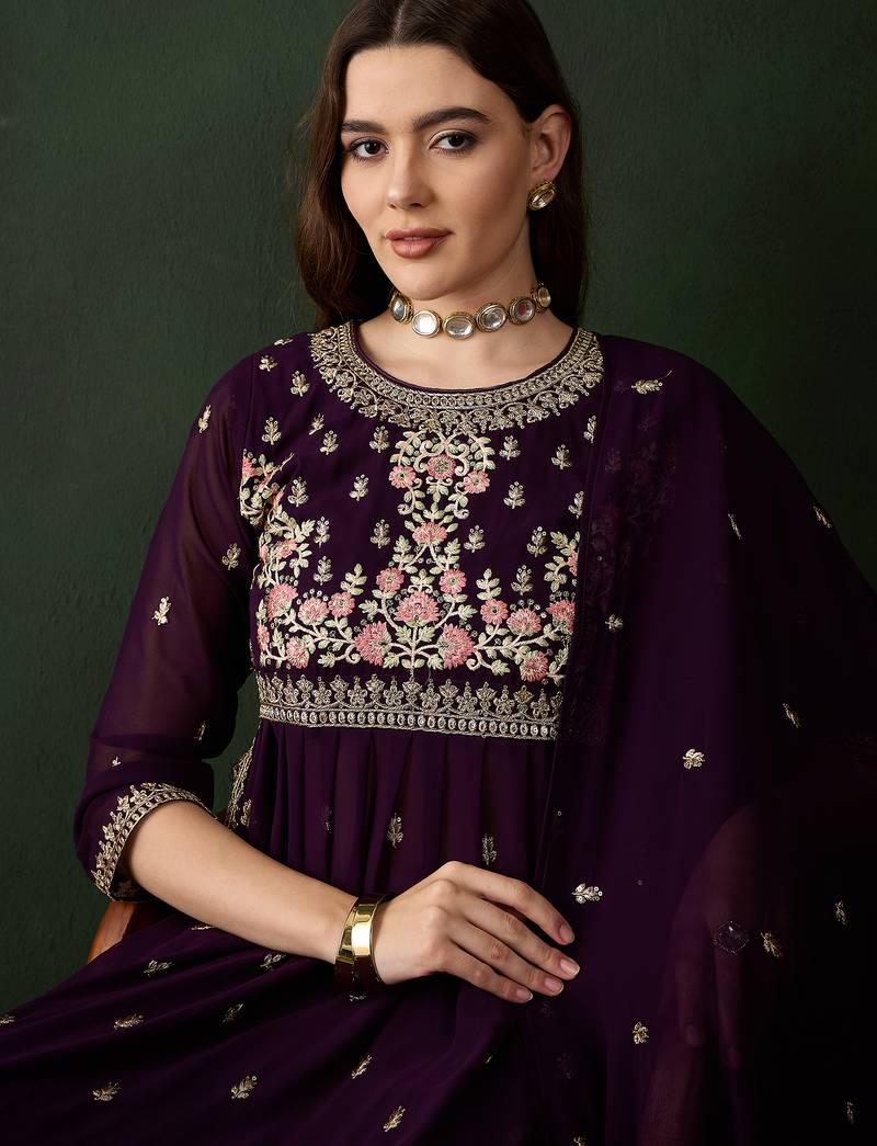 | • | Kameez | : | Color- Purple / Fabric- Faux Georgette |