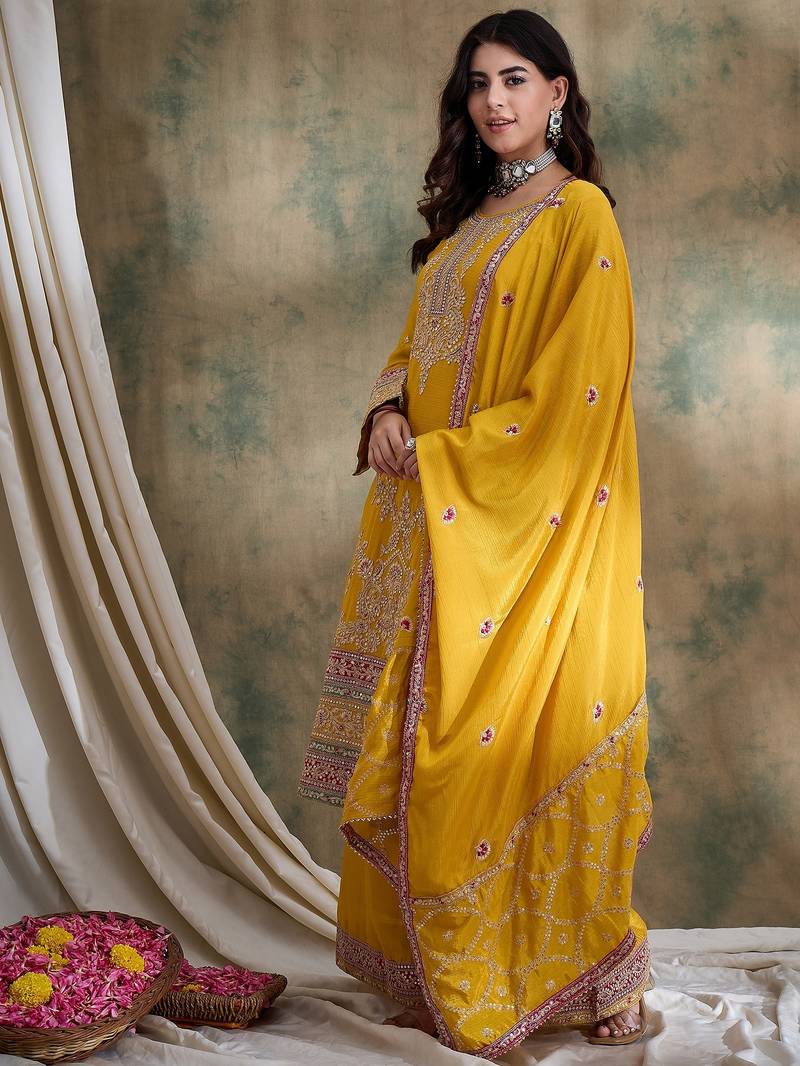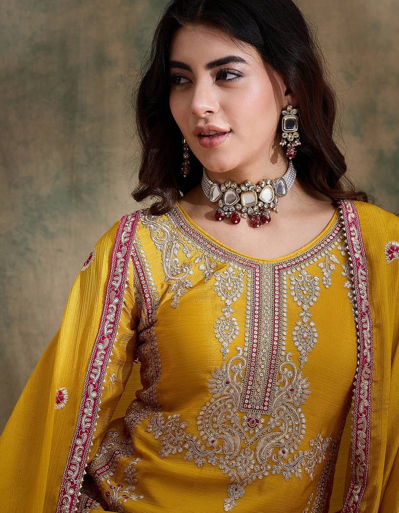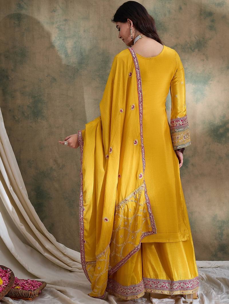 | Product Description | Bright Yellow Kurta Palazzo Set Crafted In Premium Chinon Fabric For A Festive Vibe. Straight Embroidered Kurta Top With A 46 Inch Length, Stitched And Ready To Wear. Matching Chinon Palazzo Bottom, Designed For Comfort And Graceful Movement. Embroidered Chinon Dupatta With A 2.15 Meter Length To Complete The Look. Suitable For Festive Occasions, Daytime Events, And Celebrations. |