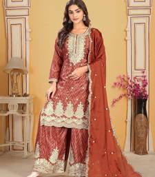 rust chinon kurta palazzo set round neck stitched