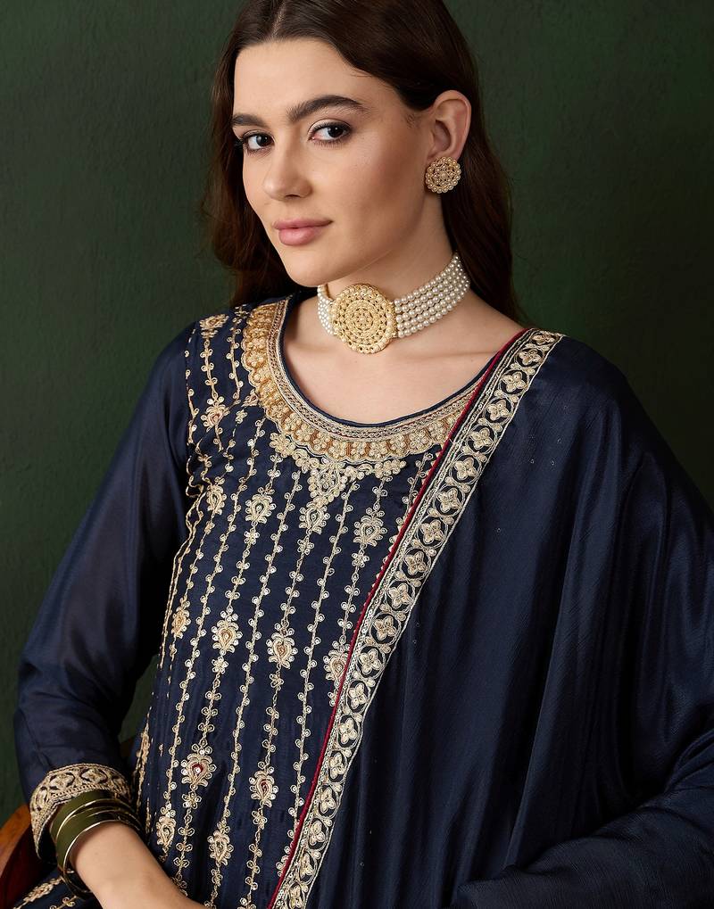 | Product Description | Elegant Blue Flared Kurta Crafted From Premium Chinon Fabric. Intricate Embroidery Enhances The Festive And Designer Appeal. Comfortable Stitched Palazzo Offers Ease And Graceful Movement. Lightweight Embroidered Chinon Dupatta Completes The Ensemble. Perfect For Festive Celebrations, Parties, And Special Occasions. |