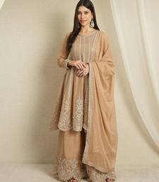 | Product Name | Coffee Georgette Top With Bottom And Dupatta Full Sleeve Embroidered A Line Kurta Palazzo Set | |