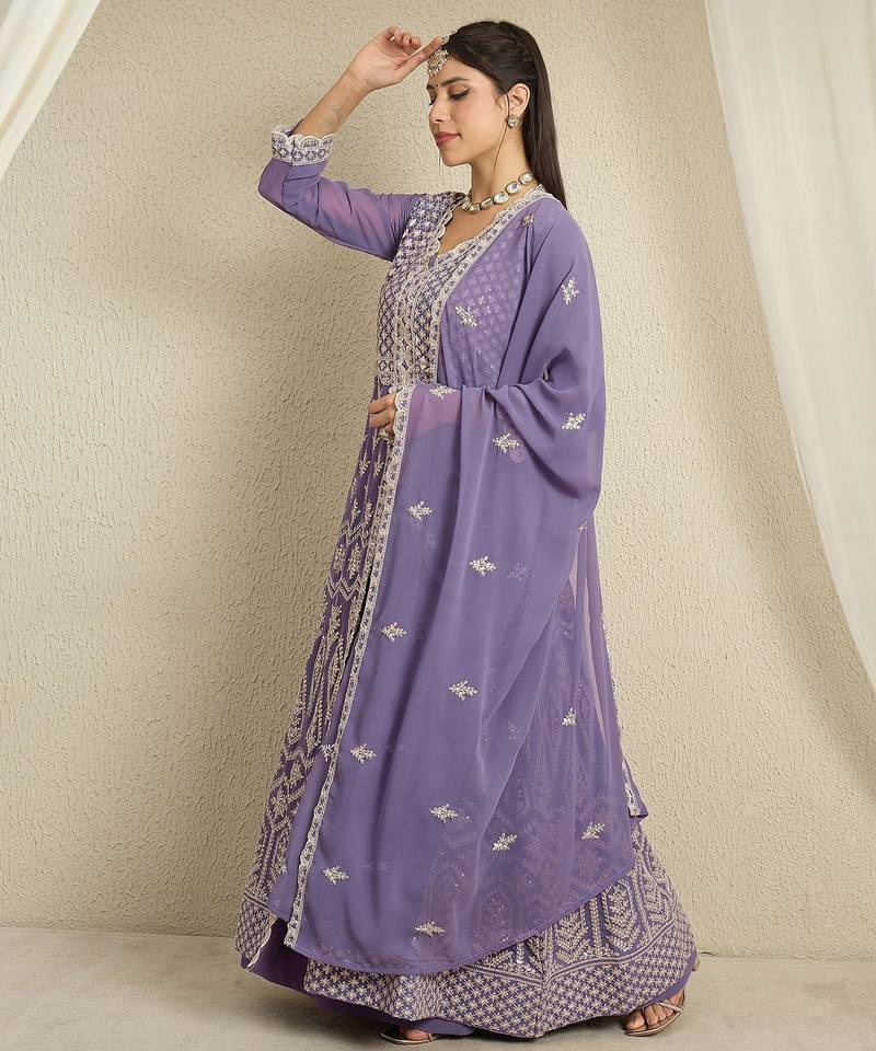 Product Name Lavender Georgette Anarkali Style Long Choli Readymade Lehenga