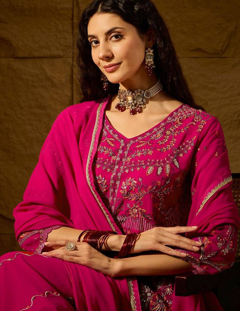 | Product Description | Beautiful Pink Flared Kurta Made From Soft Faux Georgette Fabric. Embroidered Detailing Creates A Festive And Stylish Appeal. Comfortable Stitched Palazzo With Santoon Inner. Lace Detailed Dupatta Adds Elegance To The Outfit. Ideal For Festivals, Celebrations, And Party Wear. |