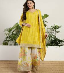 Product Name Yellow Chinon Kurta Palazzo Set Notch Neck