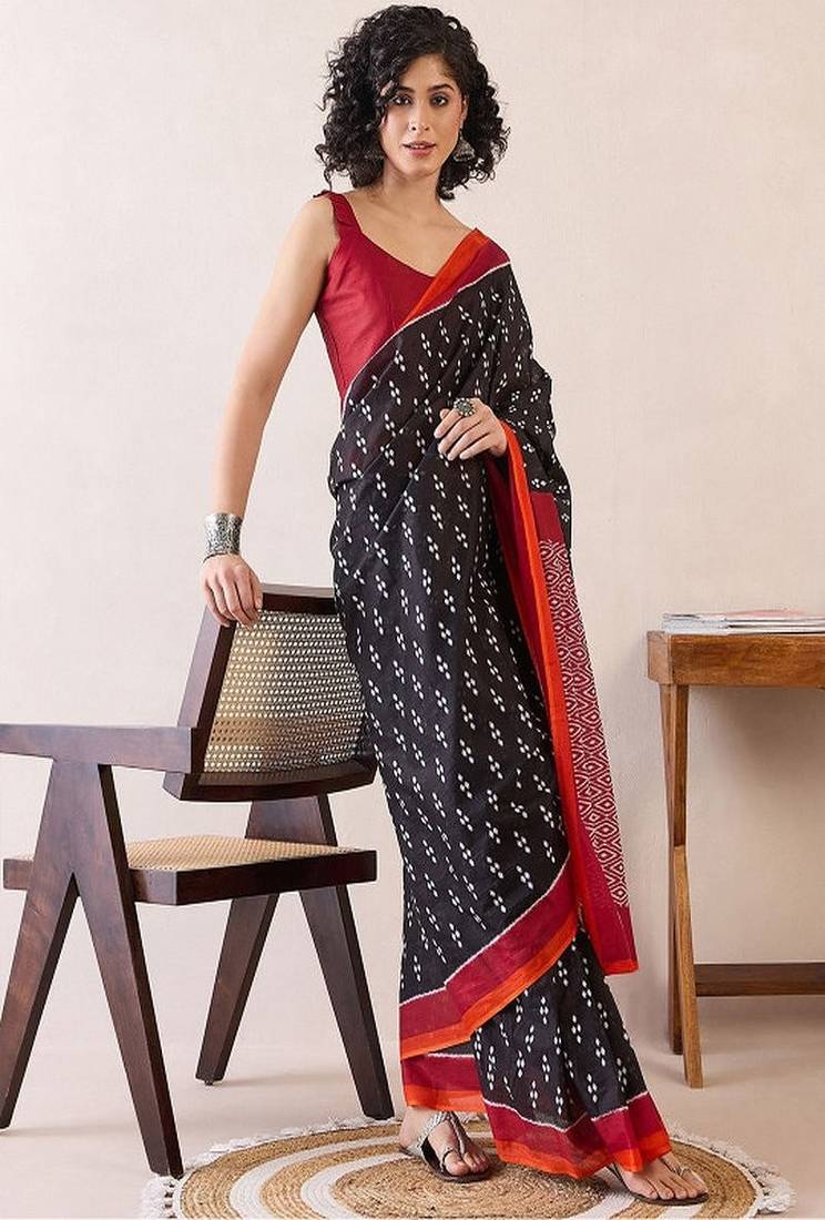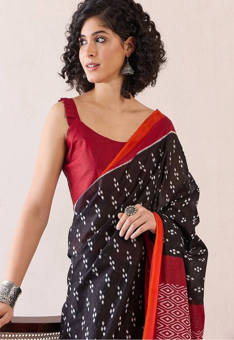 | • | Saree | : | Color- Black / Fabric- Blended Cotton |