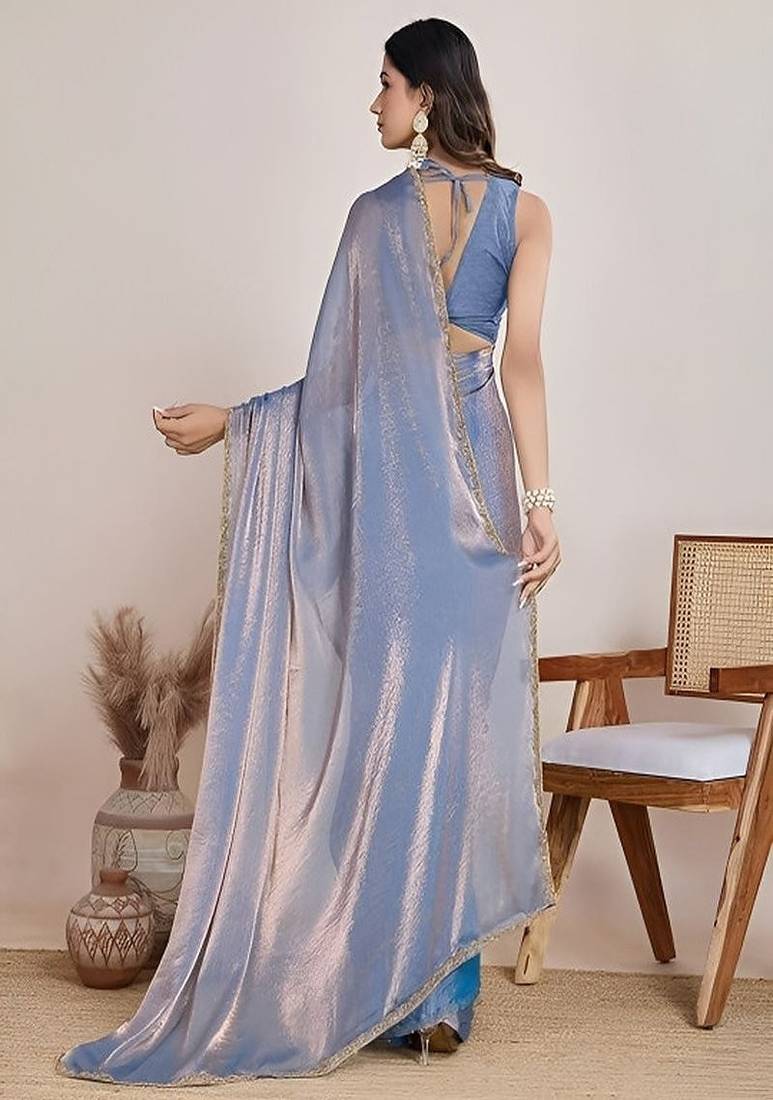 | • | Saree | : | Color- Turquoise / Fabric- Tissue |