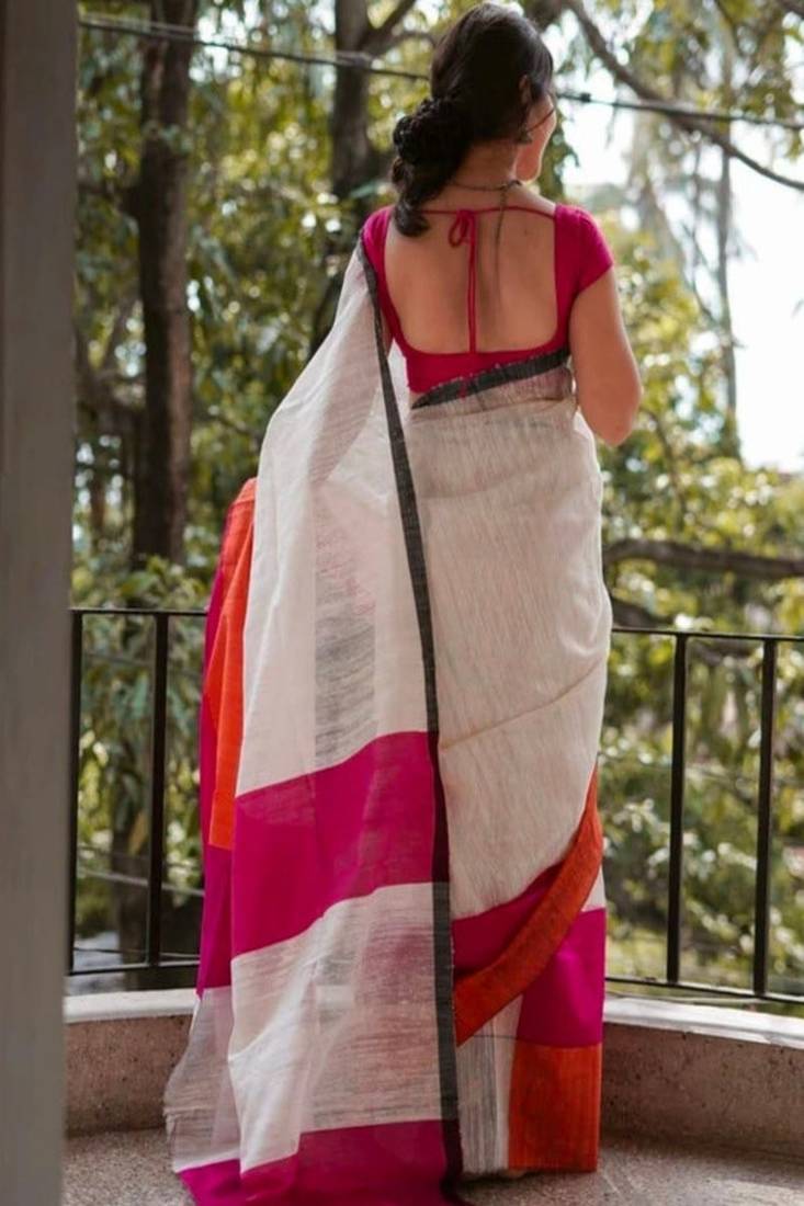 5. Colourblocked khadi saree