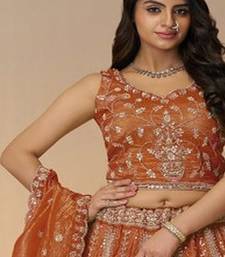 Embroidered organza semi stitched lehenga & unstitched blouse with dupatta
