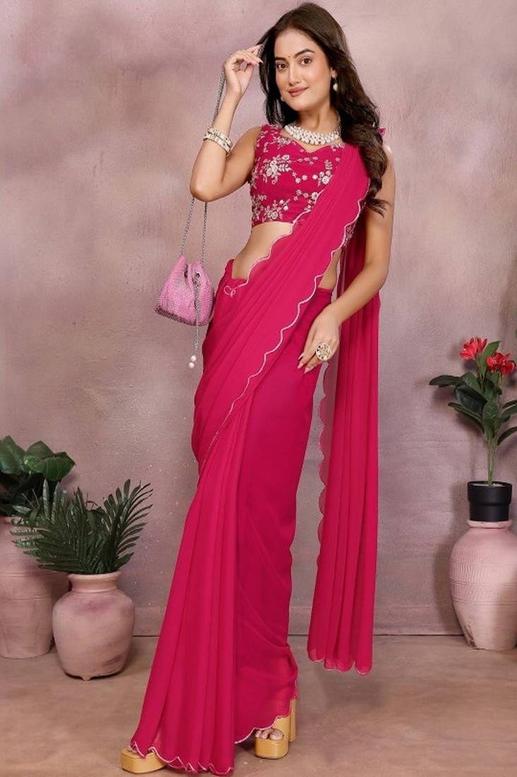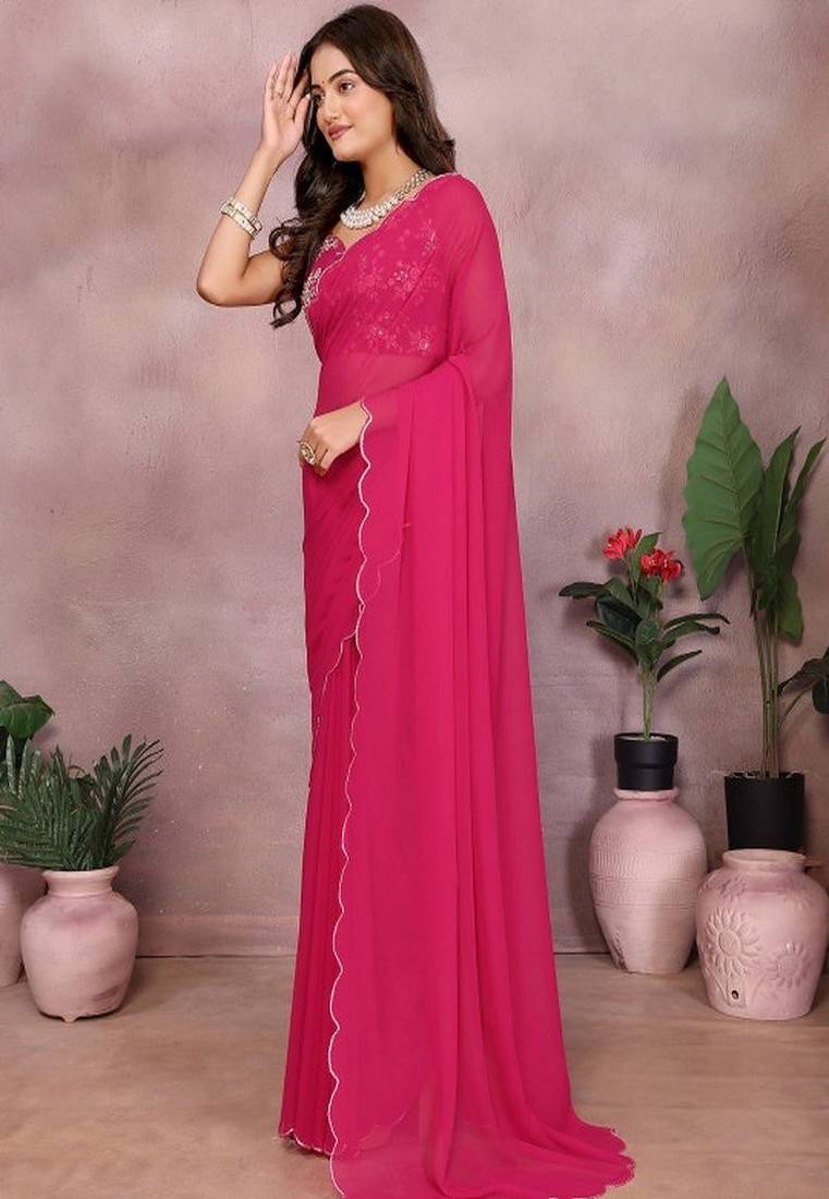 | • | Saree | : | Color- Pink / Fabric- Georgette |