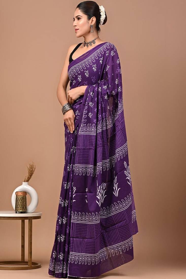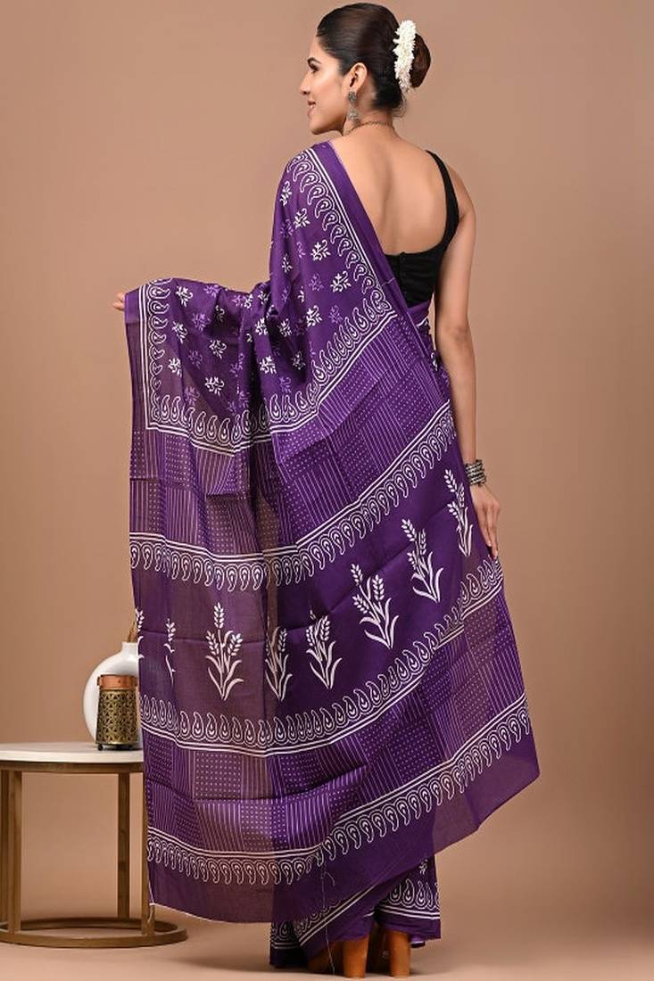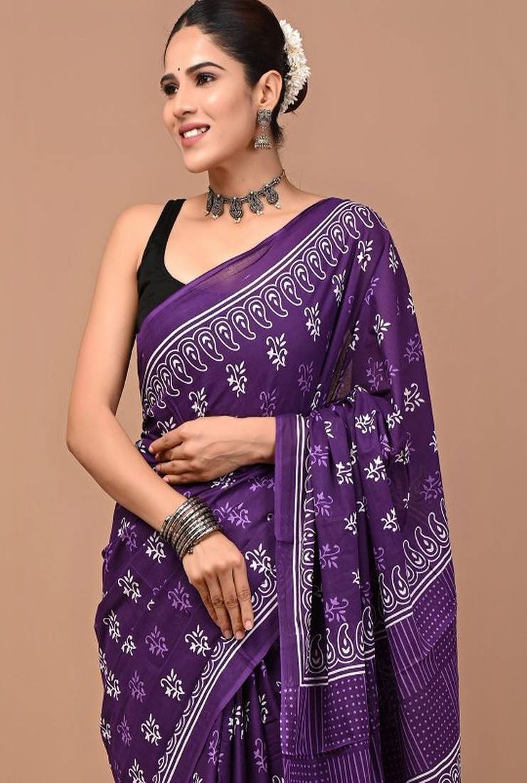 | • | Saree | : | Color- Purple / Fabric- Pure Cotton |