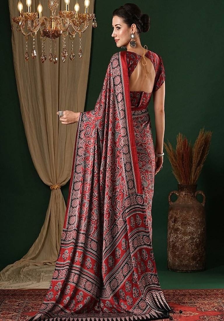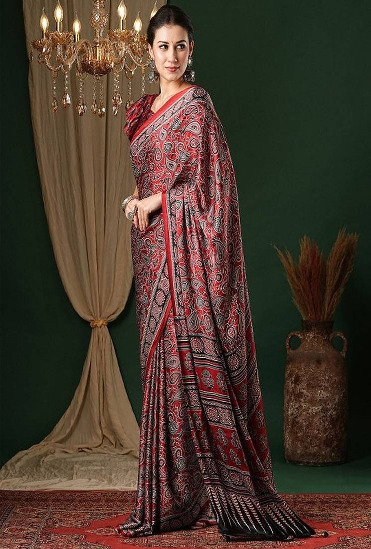 | • | Saree | : | Color- Maroon / Fabric- Crepe |