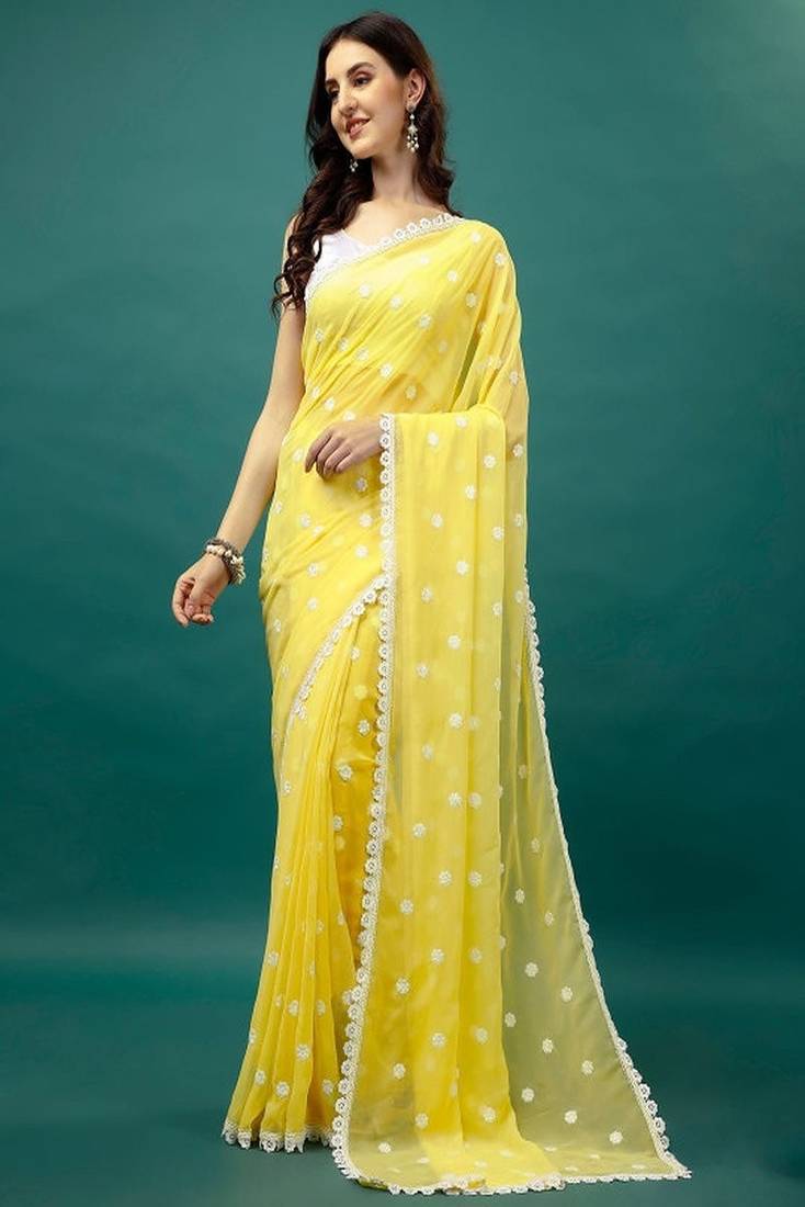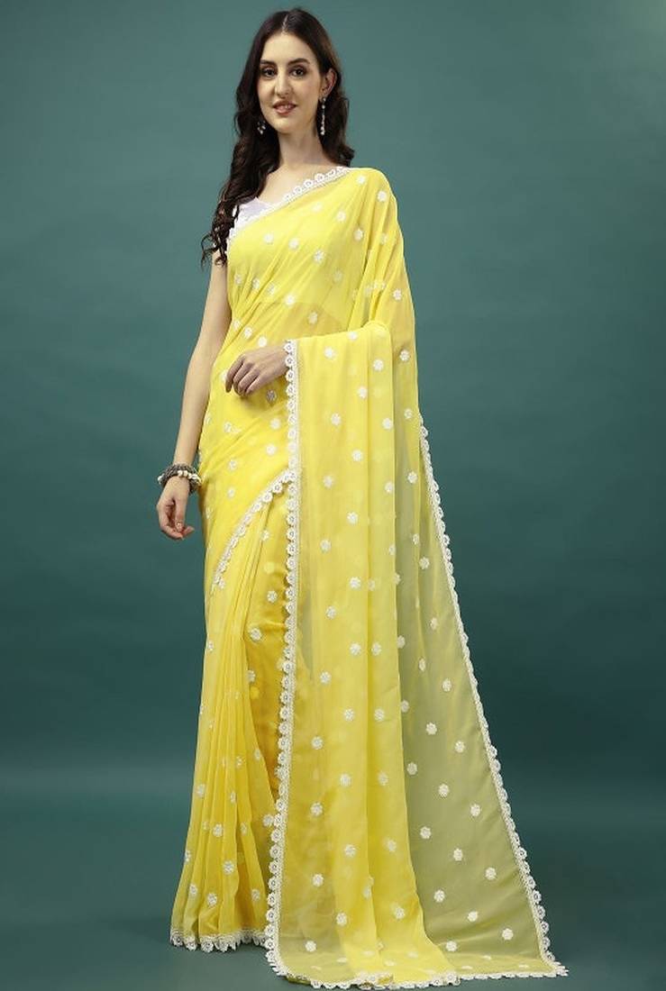 | Product Name | Floral Embroidered Pure Georgette Saree | |