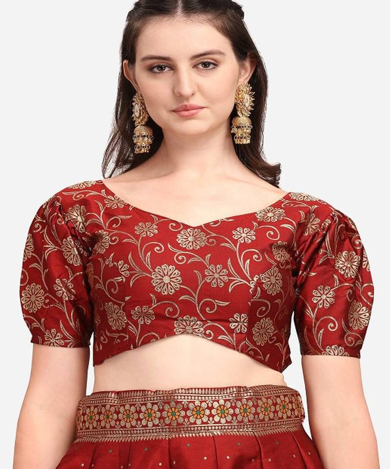 Maroon & green ready to wear lehenga & unstitched blouse with dupatta