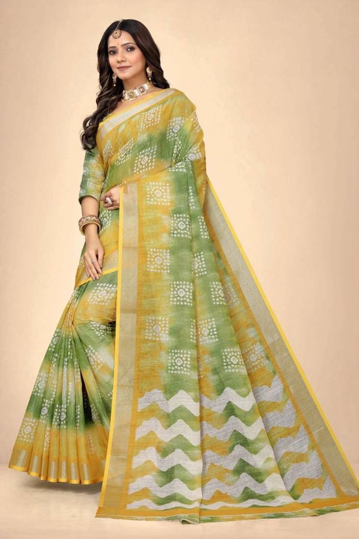 | • | Saree | : | Color- Yellow / Fabric- Pure Cotton |