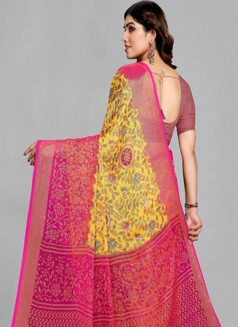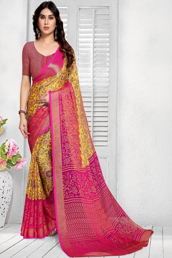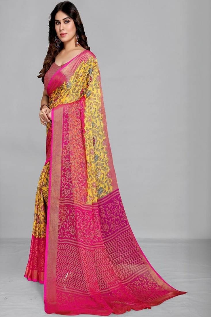 Product Name Printed Saree With Zari Border & Unstitched Blouse