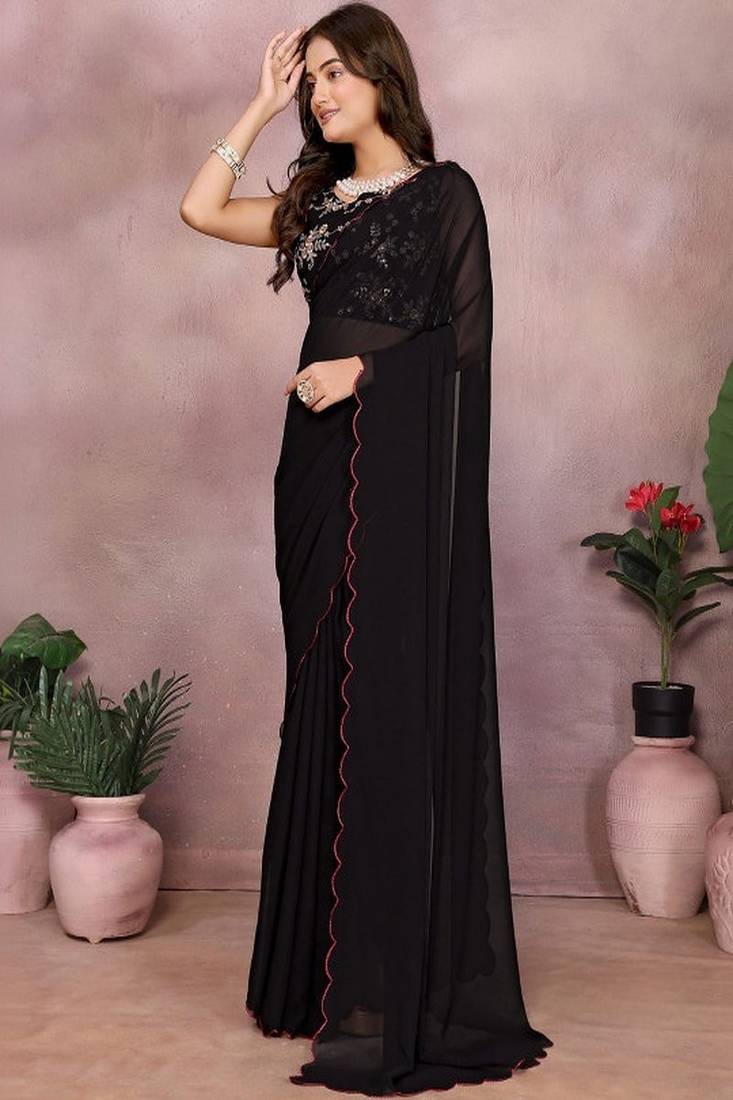 | • | Saree | : | Color- Black / Fabric- Pure Georgette |