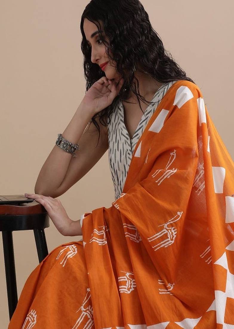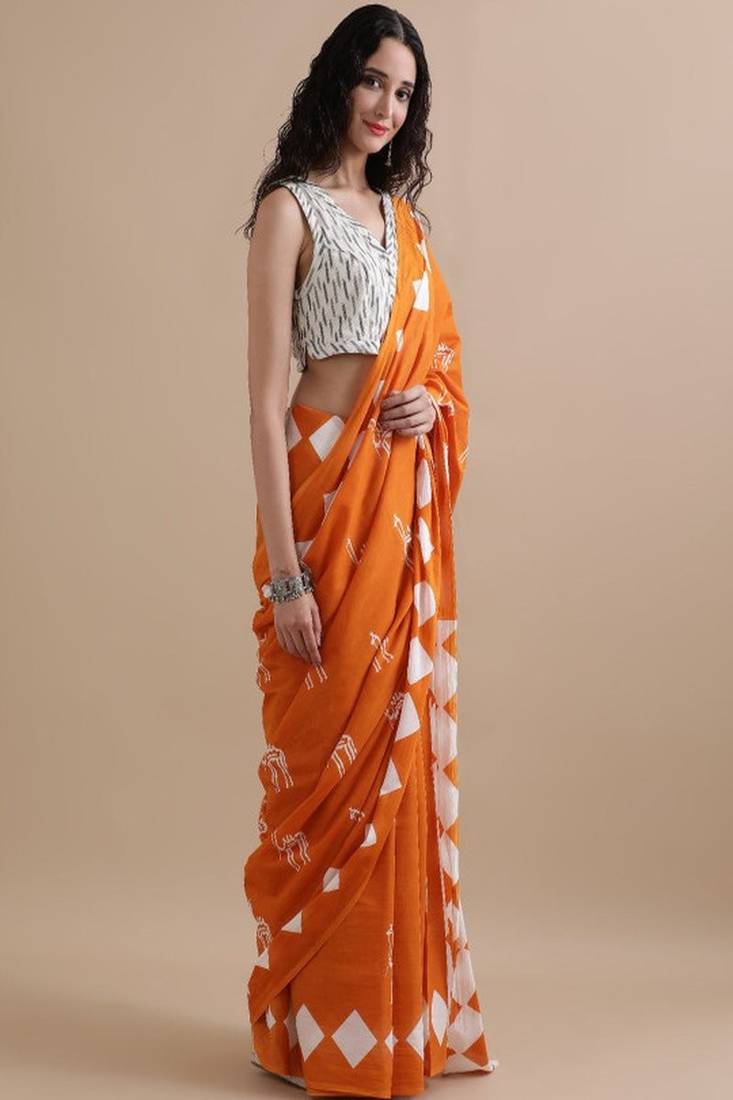 | • | Saree | : | Color- Orange / Fabric- Pure Cotton |