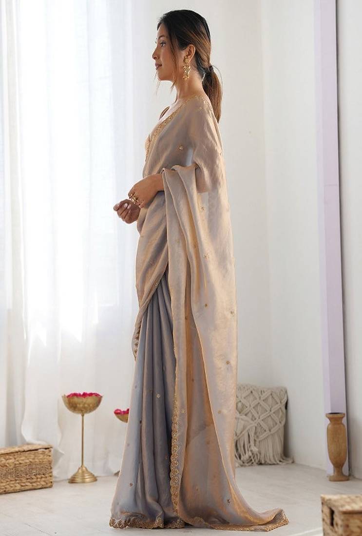 Women embellished sequinned tissue designer saree