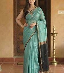 Woven blue designer banarasi cotton saree