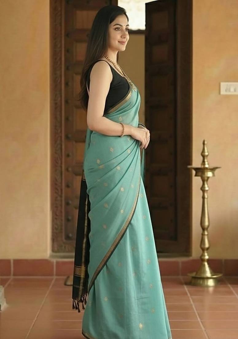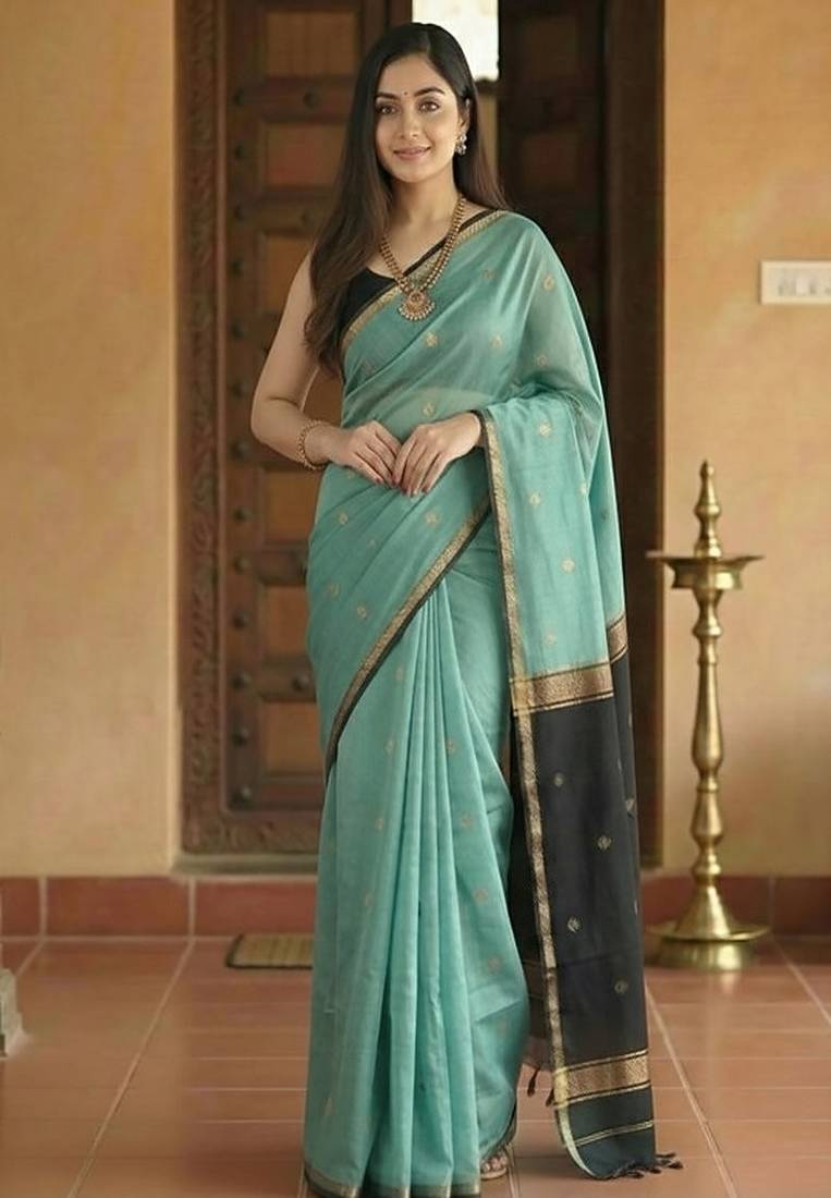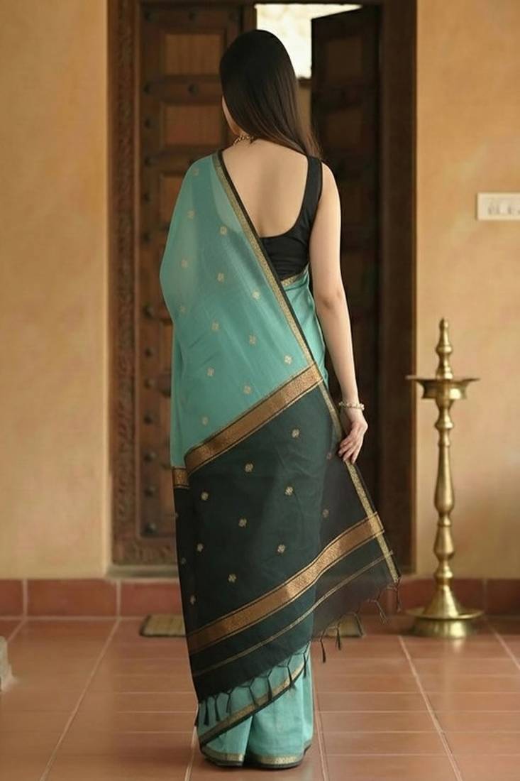 Product Name Woven Blue Designer Banarasi Cotton Saree