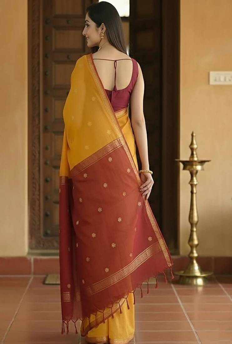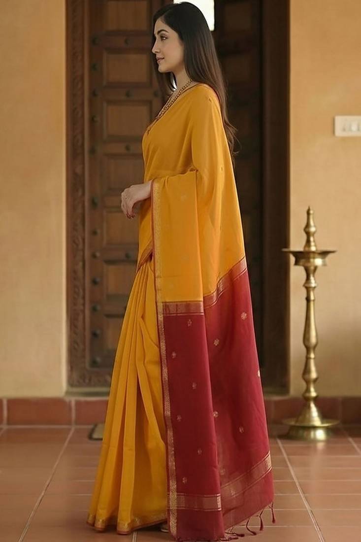 | • | Saree | : | Color- Yellow / Fabric- Blended Cotton |
