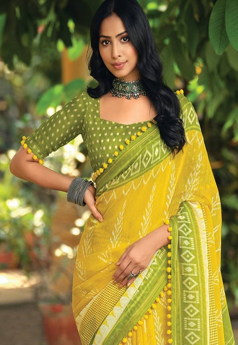 | Product Name | Yellow Ethnic Motifs Printed Ikat Saree | |