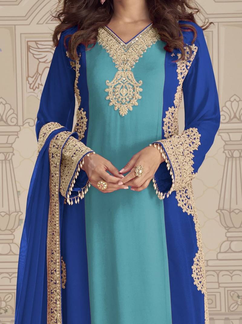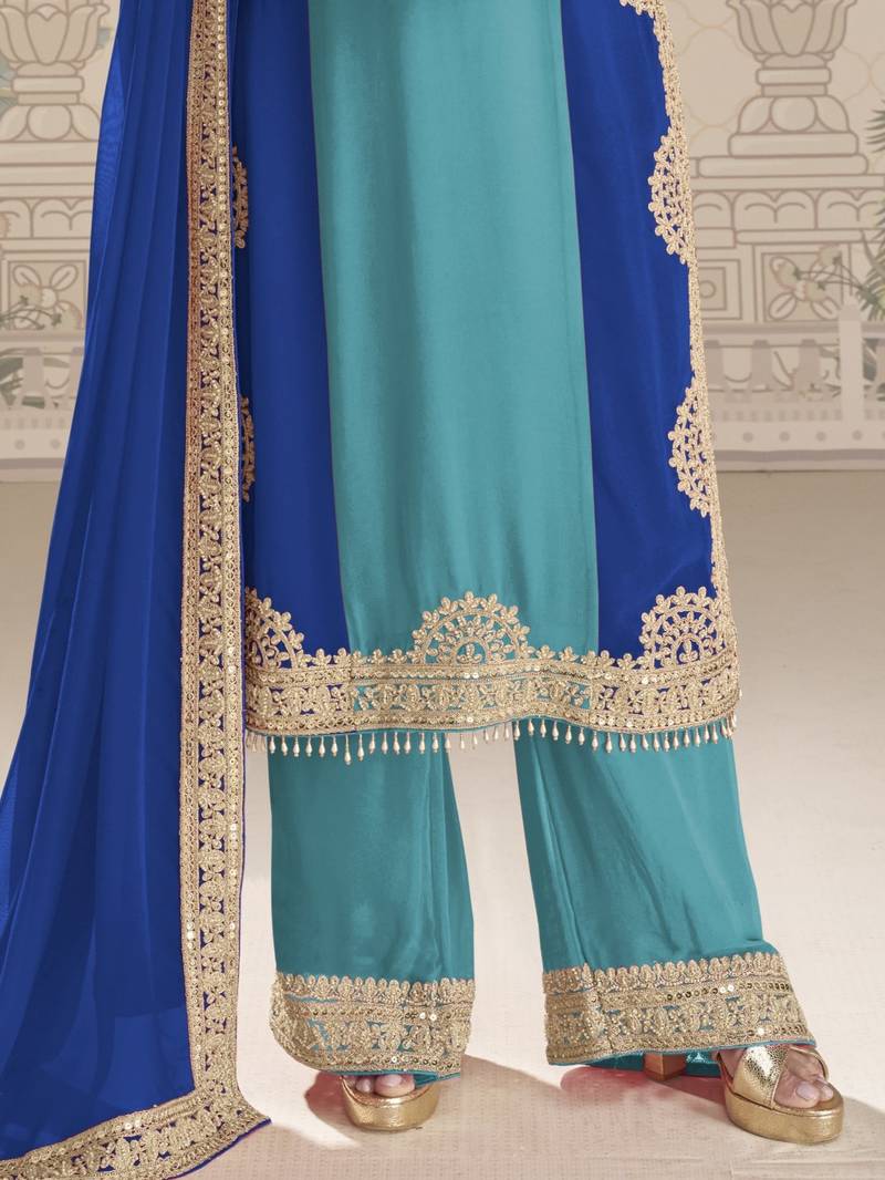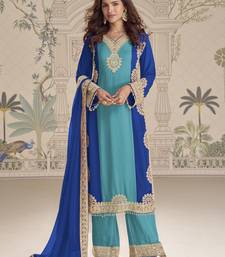 Blue embroidered georgette semi-stitch palazzo suit with dupatta semi stitched