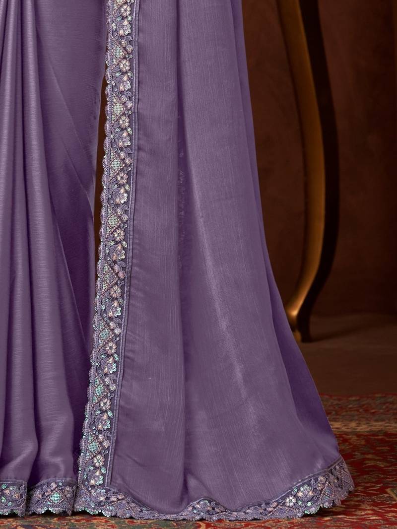 | Product Name | Light Purple Silk Chiffon Saree, Lace Border With Heavy Embroidered Blouse For Special Occasions | |