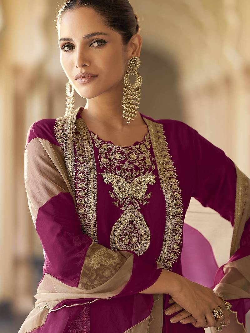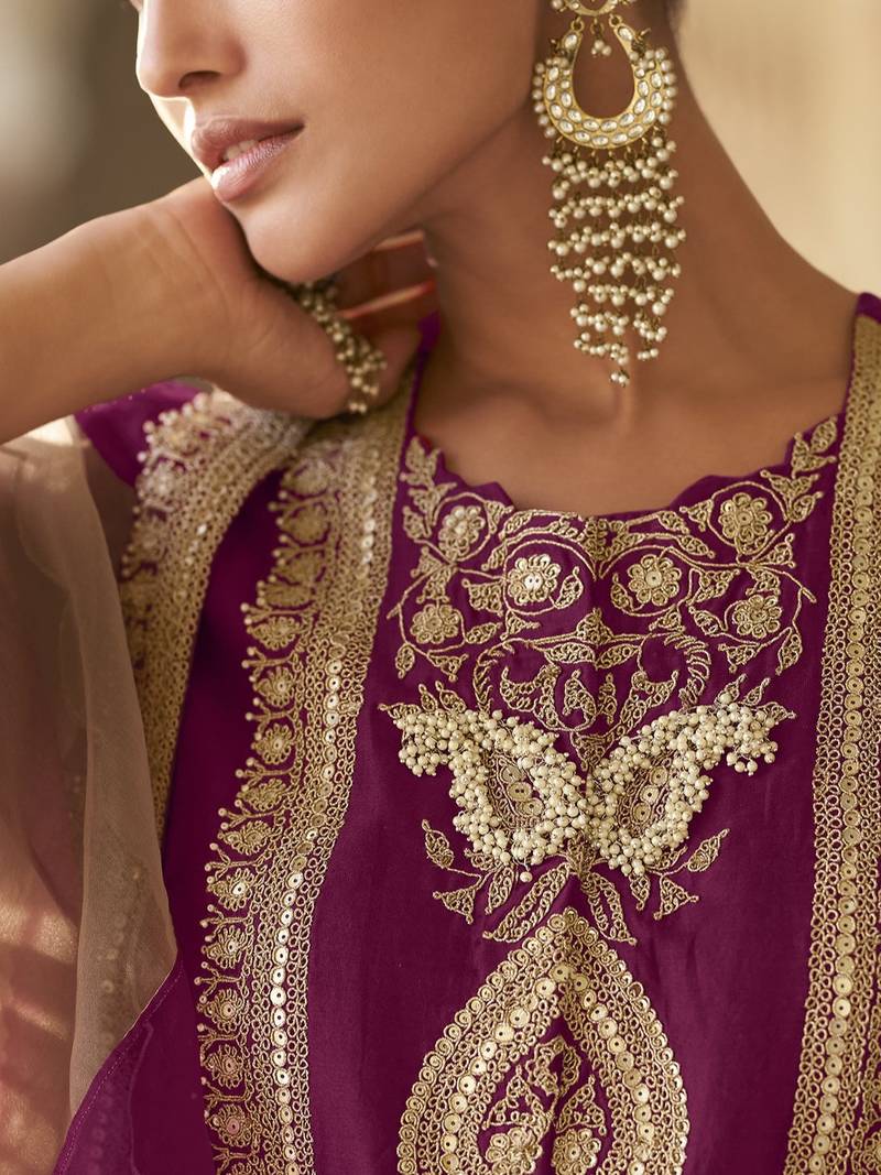 | Product Name | Plum Embroidered Silk Semi Stitch Sharara Suit With Dupatta | |