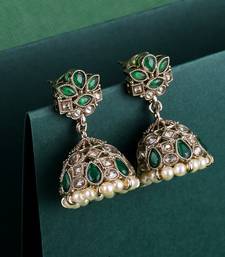| Product Name | Appealing Flower Design Green Uncut Kundan Stone Antique Gold Plated Jhumki Earring For Women | |