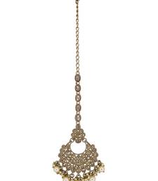Chandelier shape mother of pearl brown uncut kundan stone antique gold plated maang tikka for women and girls