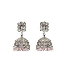 Charming pear and flower shape pink uncut kundan stone silver plated jhumki earring for women