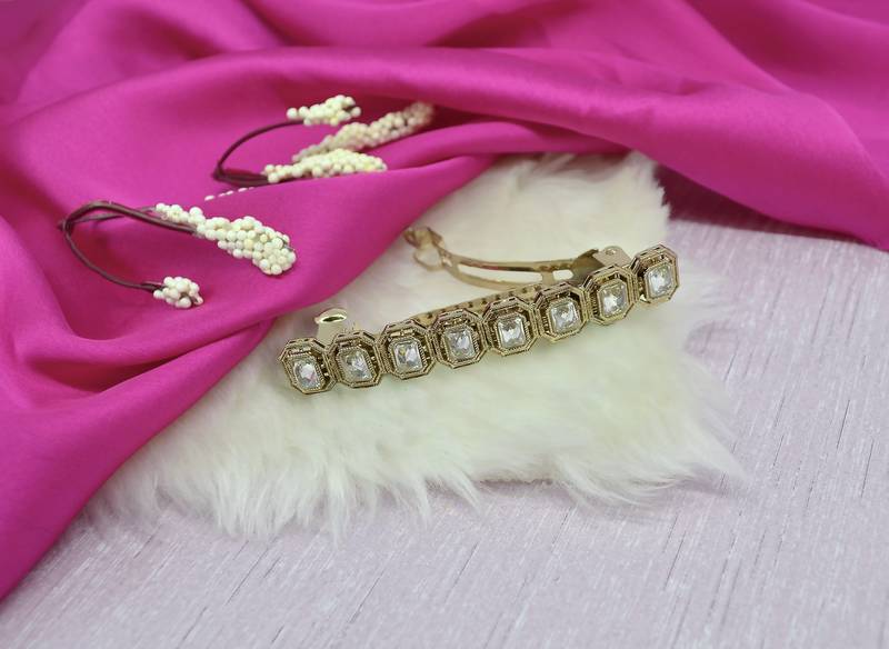 Product Name | Excellent Round & Square Shape Antique Gold Plated Uncut Kundan Stone 1 Hair Clip For Women & Girls | |