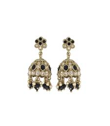 Modish flower shape black uncut kundan stone antique gold plated jhumki earring for women and girls