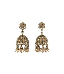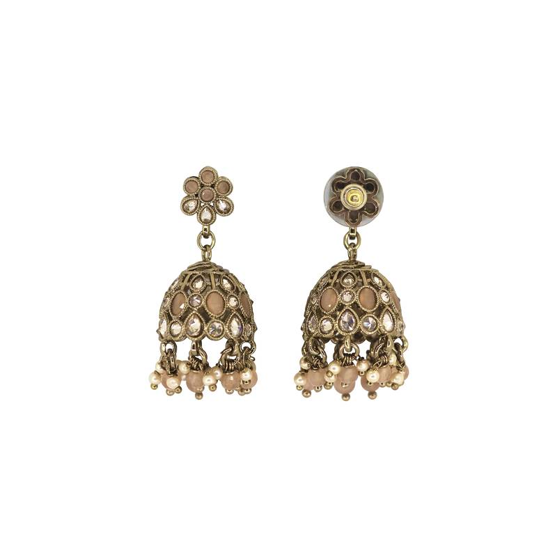 Pretty flower shape peach uncut kundan stone antique gold plated jhumki earring for women and girls