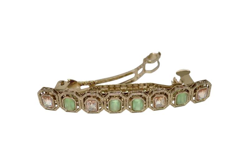 Product Name Round And Square Shape Antique Gold Plated Cz And Uncut Kundan Stone 1 Hair Clip For Women And Girls