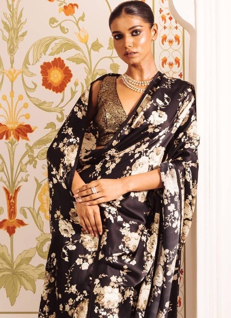 | Product Name | Black Printed Satin Saree With Blouse Piece | |