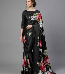 Black printed satin saree with blouse piece