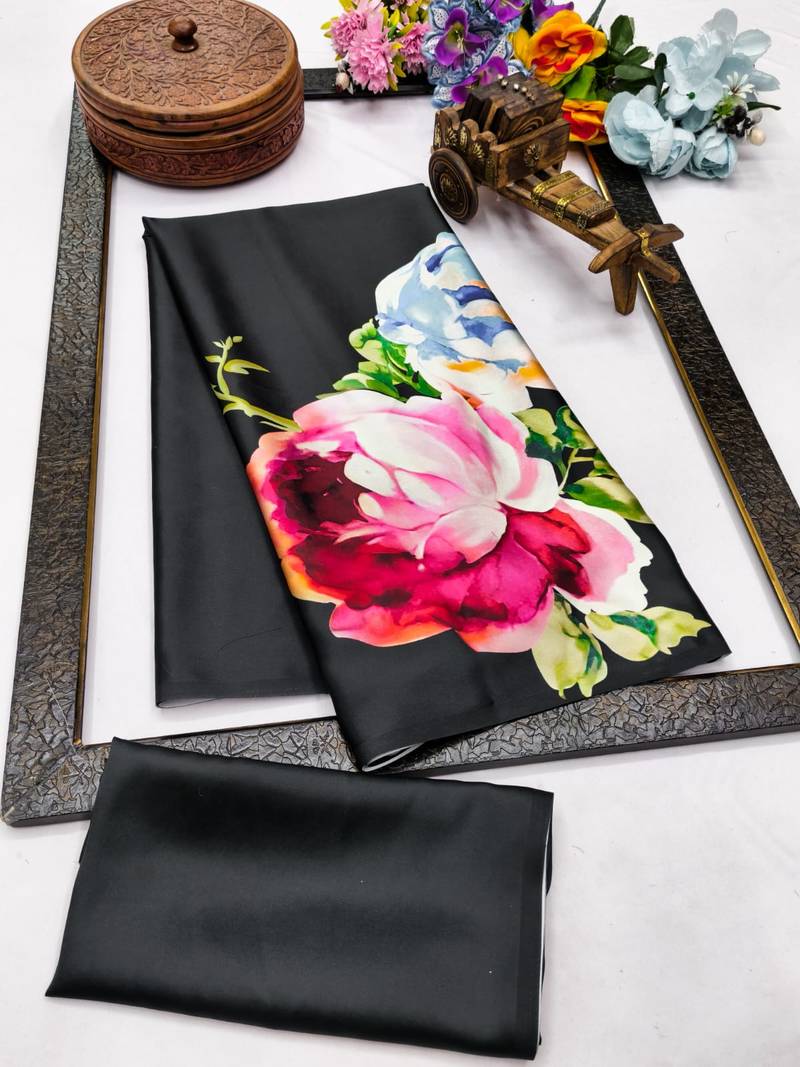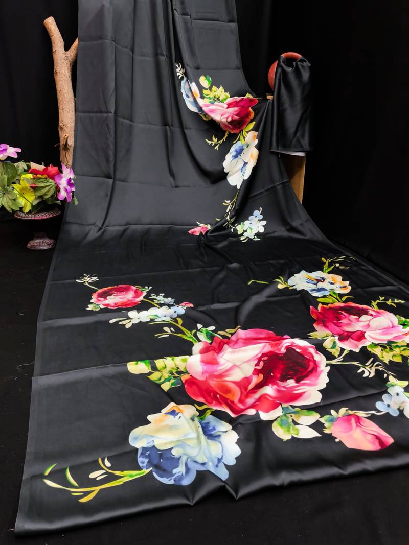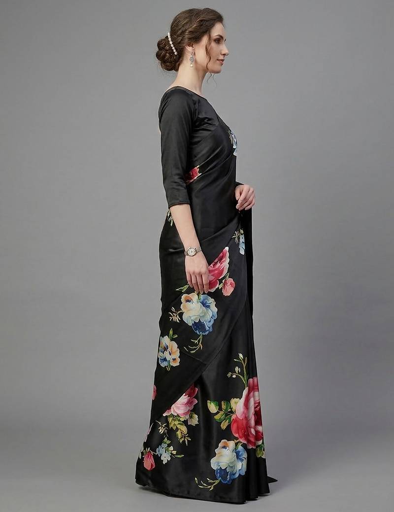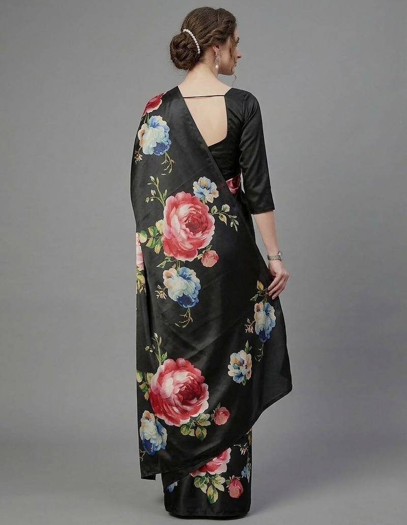 | Product Name | Black Printed Satin Saree With Blouse Piece | |