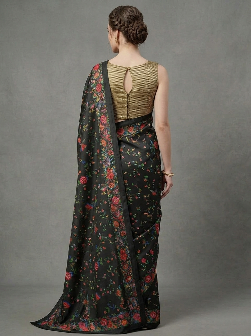 | Product Name | Black Printed Satin Saree With Blouse Piece | |