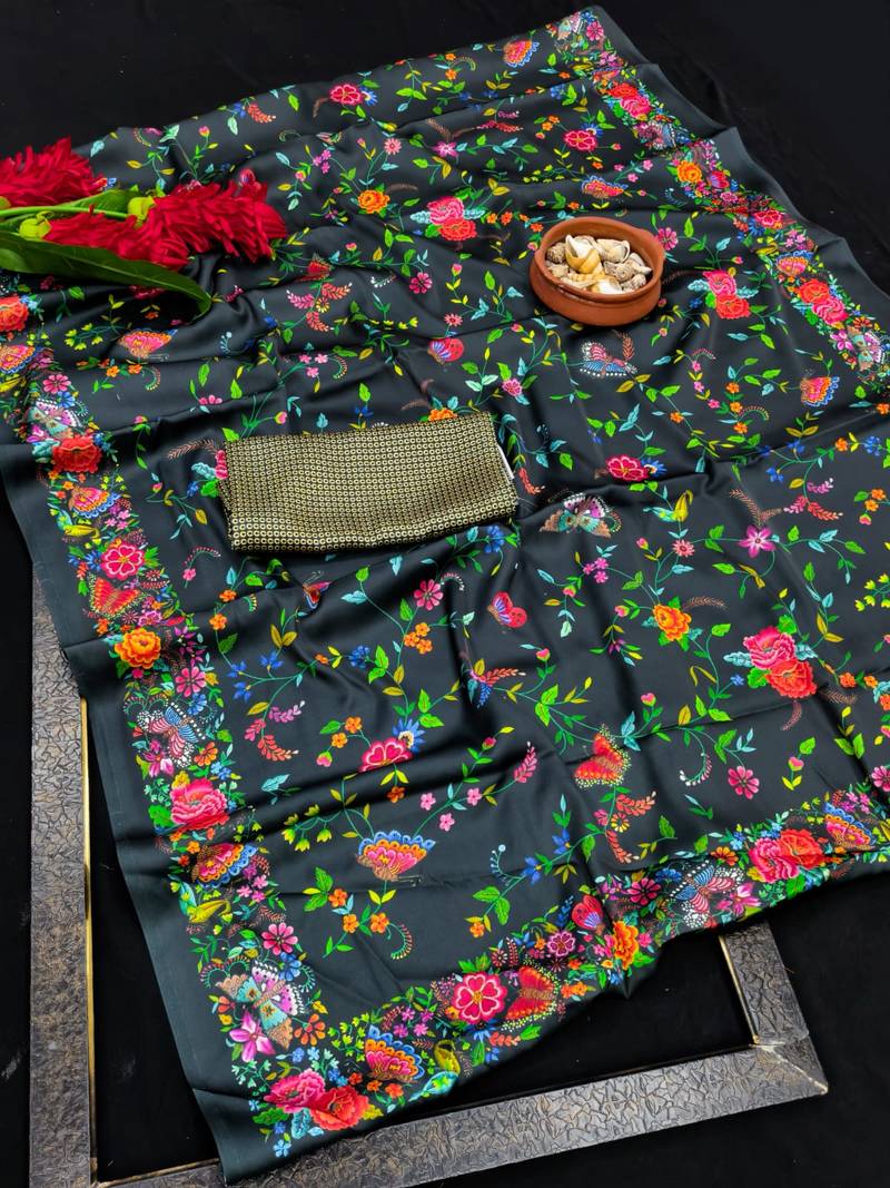 | Product Description | Elegant Satin Printed Saree Crafted With Floral Pattern Design. Saree Comes With Unstitched Satin Blouse Piece. Note: Please Refer Real Image Attached |