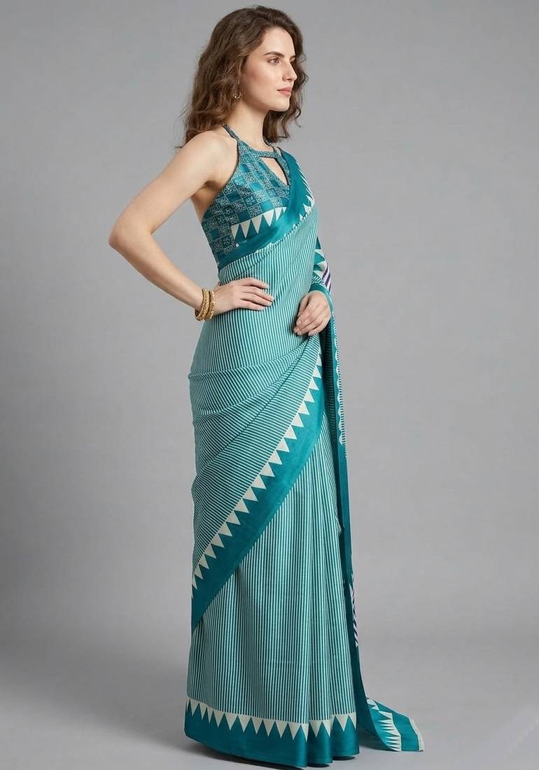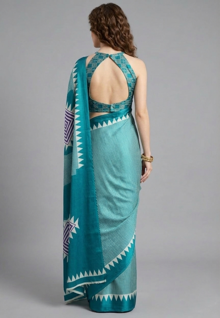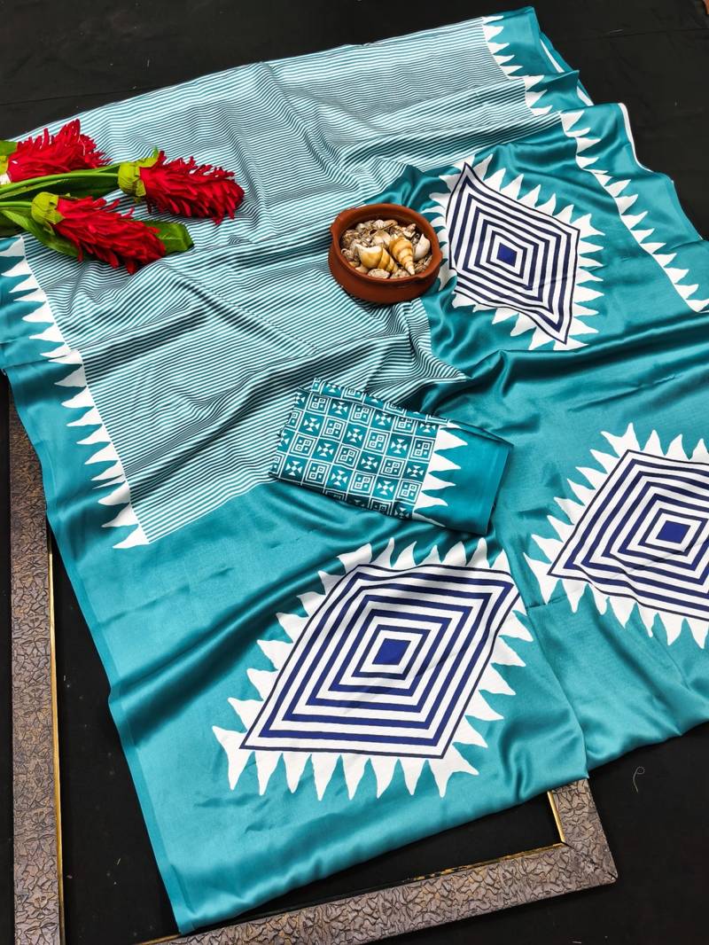 | Product Description | Elegant Satin Printed Saree Crafted With Ajrakh Pattern Design. Saree Comes With Unstitched Satin Blouse Piece. Note: Please Refer Real Image Attached |